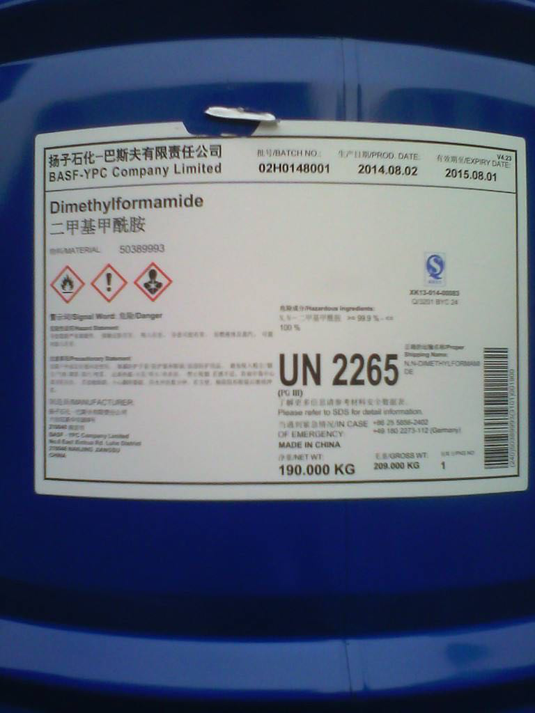 揚州巴斯夫二甲基甲酰胺二甲基甲酰胺(DMF)是一種透明液體,能和水及大部分有機(jī)溶...